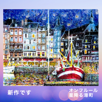 フランスの海辺、ノルマンディー地方にある港町の光景をモティーフにした作品です。