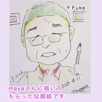 – ”ココロのパレット”グループ展でご一緒させてもらったmayaさんに、色紙に似顔絵を描いてもらいました。