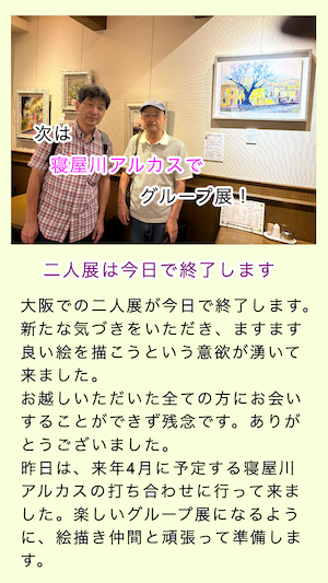 また、大阪や香川にて絵の仲間が増え、活動の幅も大きく広がってきました。