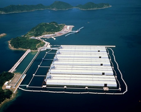 地上や地下のタンクに石油を貯める方式が一般的ですが、ここ五島では洋上に巨大な箱を浮かべて石油を貯める施設が採用されました。