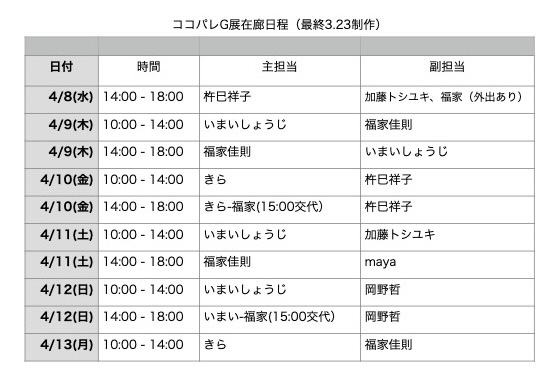 今のところ、次の日程で在廊しています。お好きな絵の画家を訪問していただけると幸いです。